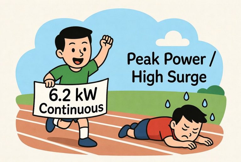 When choosing a home battery, two power ratings often cause confusion: continuous (rated power) and peak power. Peak power is often used in the industry as a sales or marketing hook. Buyer beware.